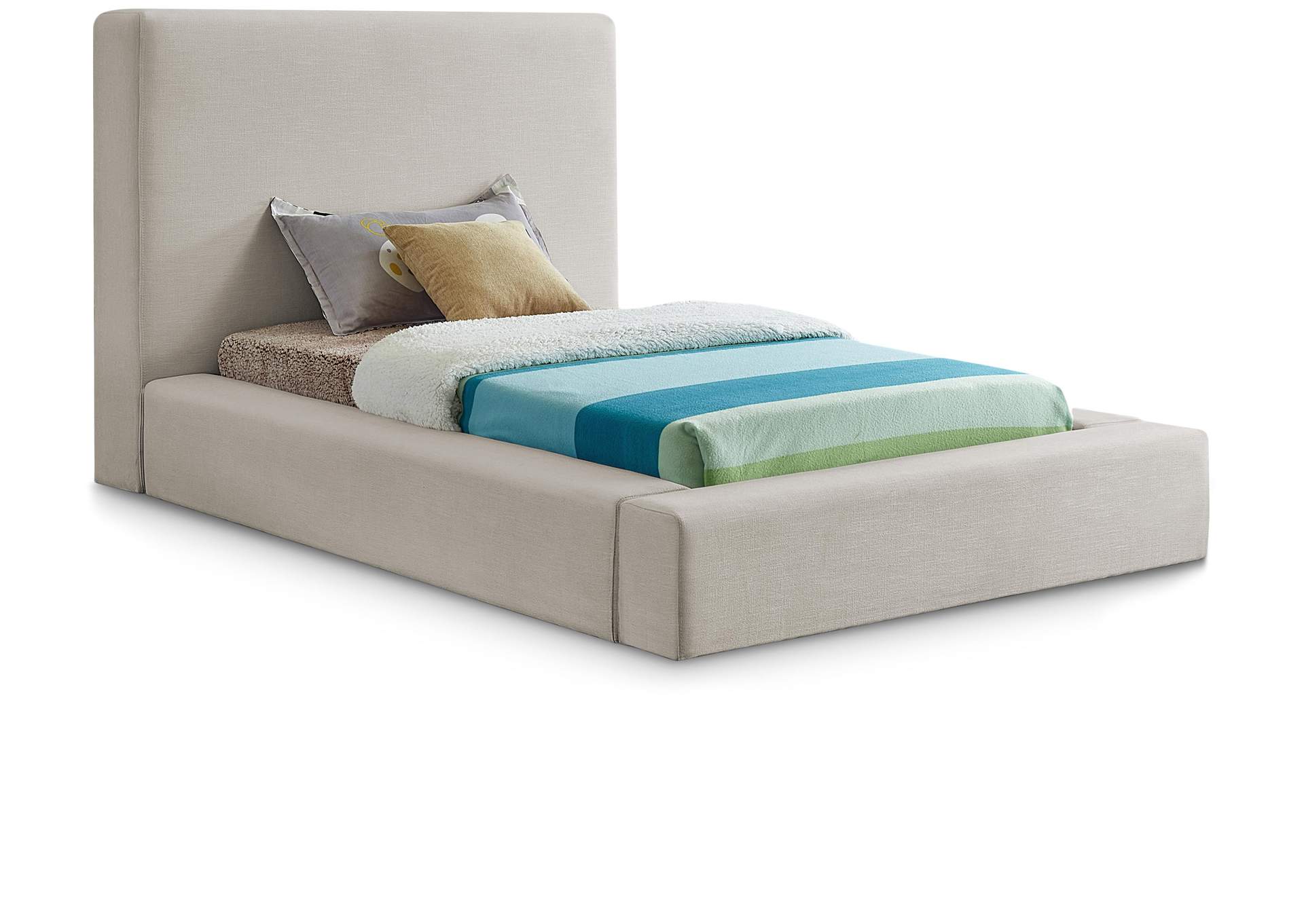 Curl up on this Devin full bed and feel like a VIP. This handsome bed has a distinctive upscale look, with its luxe beige linen textured fabric covering every square inch, from headboard to side rails and footboard, which are 8 inches thick for a luxuriously soft feel and comfort against your body while you relax and unwind before catching some Zs. The contemporary design is strikingly modern, adding an up-to-the-minute vibe to your bedroom space.